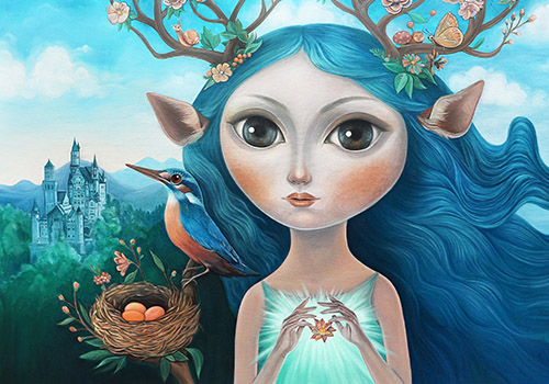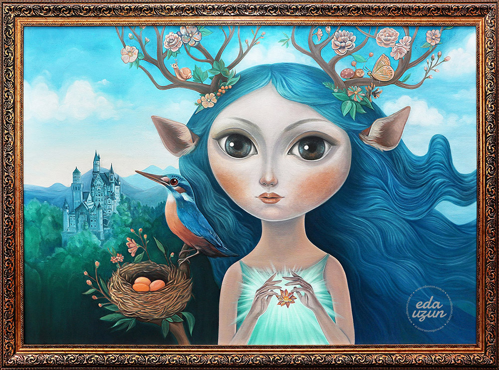 Deer Girl, 87x129cm, Mixed Media on Canvas, 2023