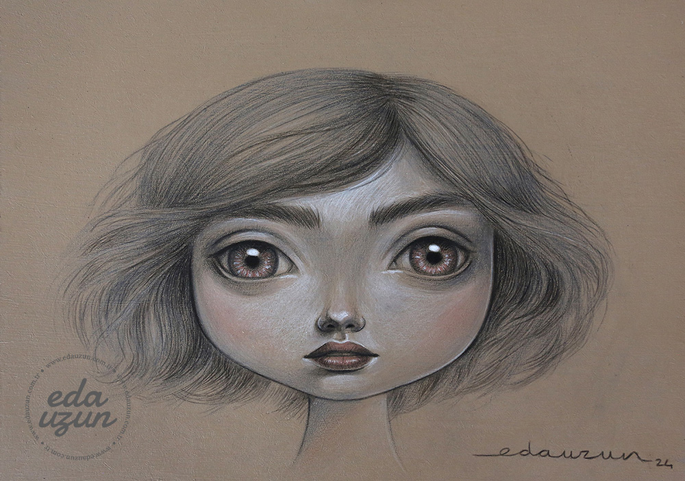 Little girl series 6, 21x29 cm, mixed media, 2024