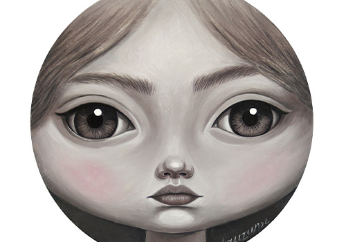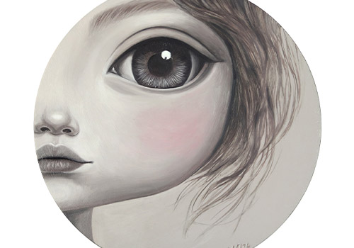 Little Girl Series 10, Dry Paint and Liquid Acrylic on Wood Panel, 25 cm Diameter x 2 cm, 2024