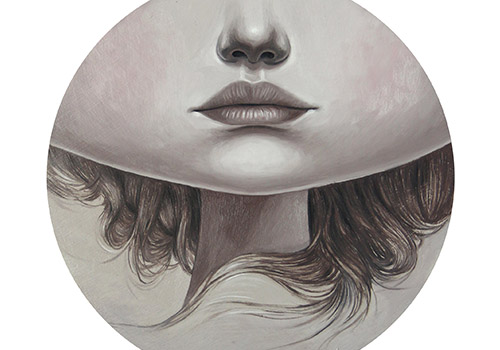 Innocents, Mixed media on wood panel, 50 cm diameter, 2024