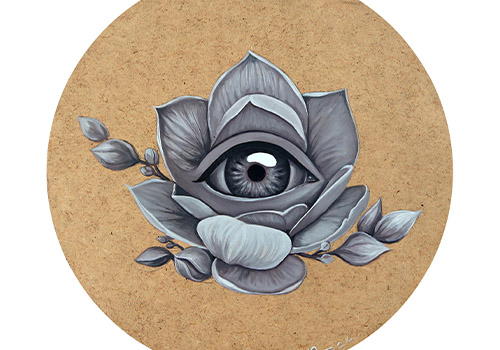 Lotus2, 25 cm diameter,, Dry paint on wooden plate, 2024