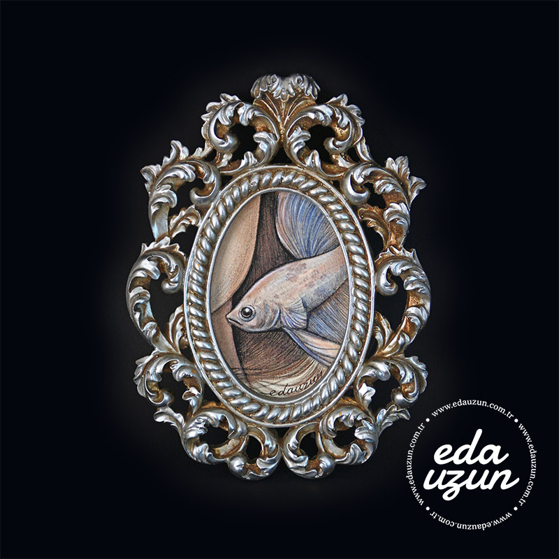 Alone Fish, 10x15 cm, (frame 20x20 cm), Watercolor on Paper 2024