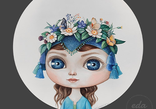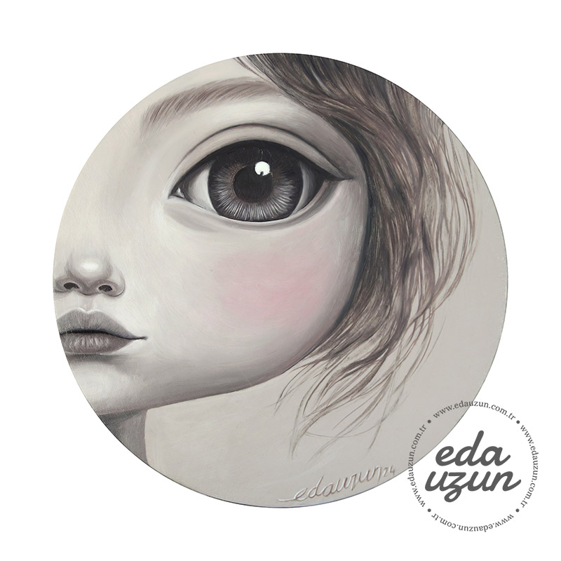 Little girl series 1, Oil color on canvas, 25 cm diameter, 2024