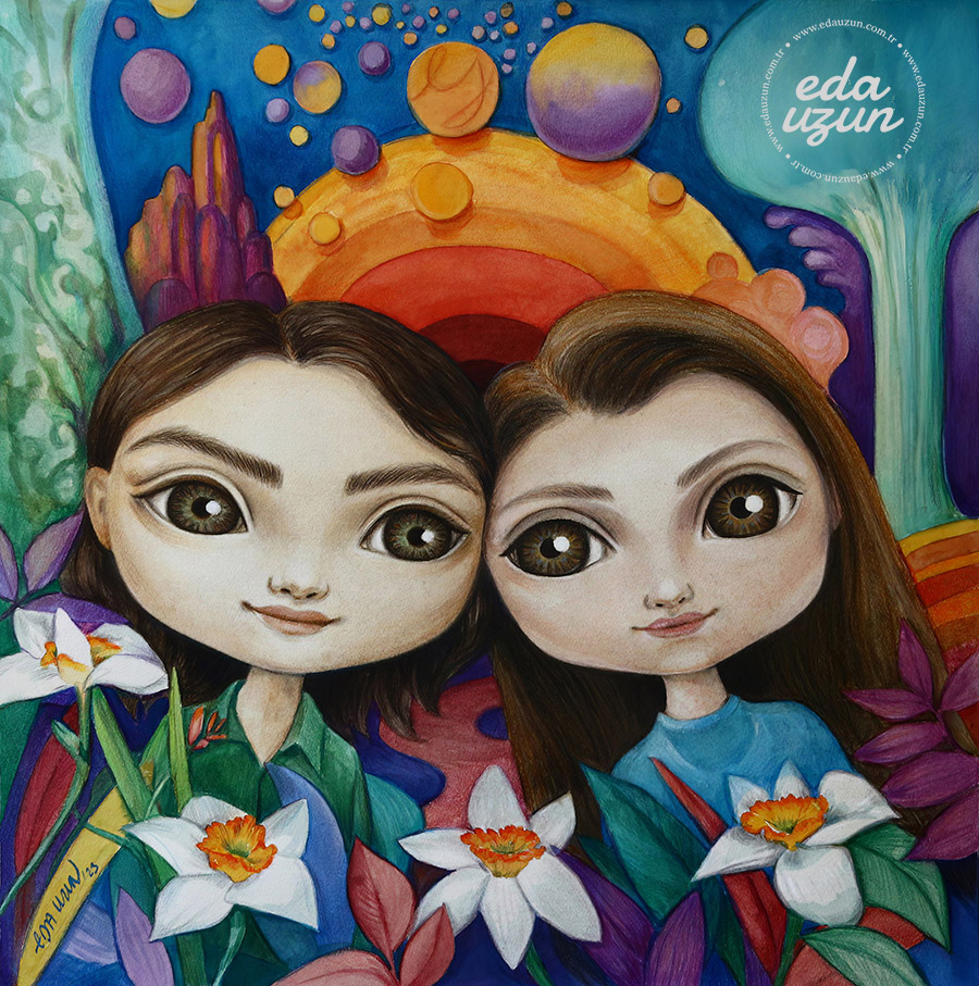 Eda & Yasemin, Watercolor on Paper, 50x50cm, 2023
