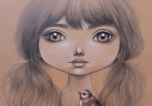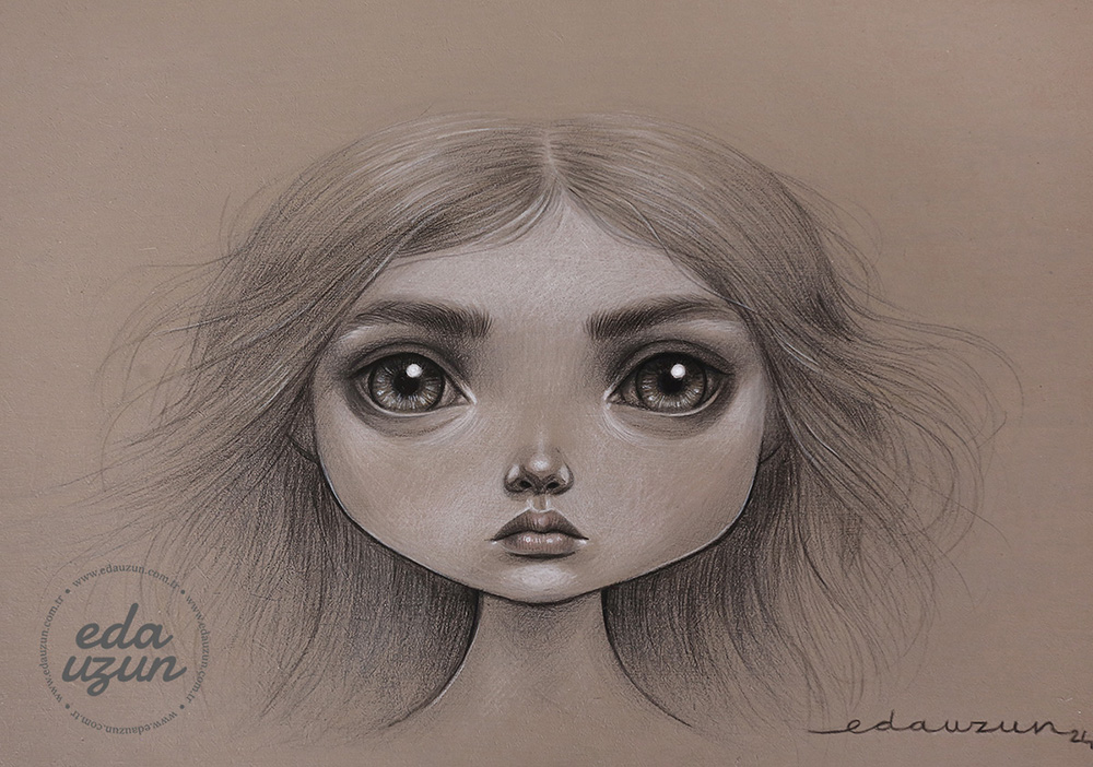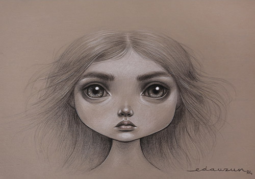 Little girl series 6, 21x29 cm, mixed media, 2024