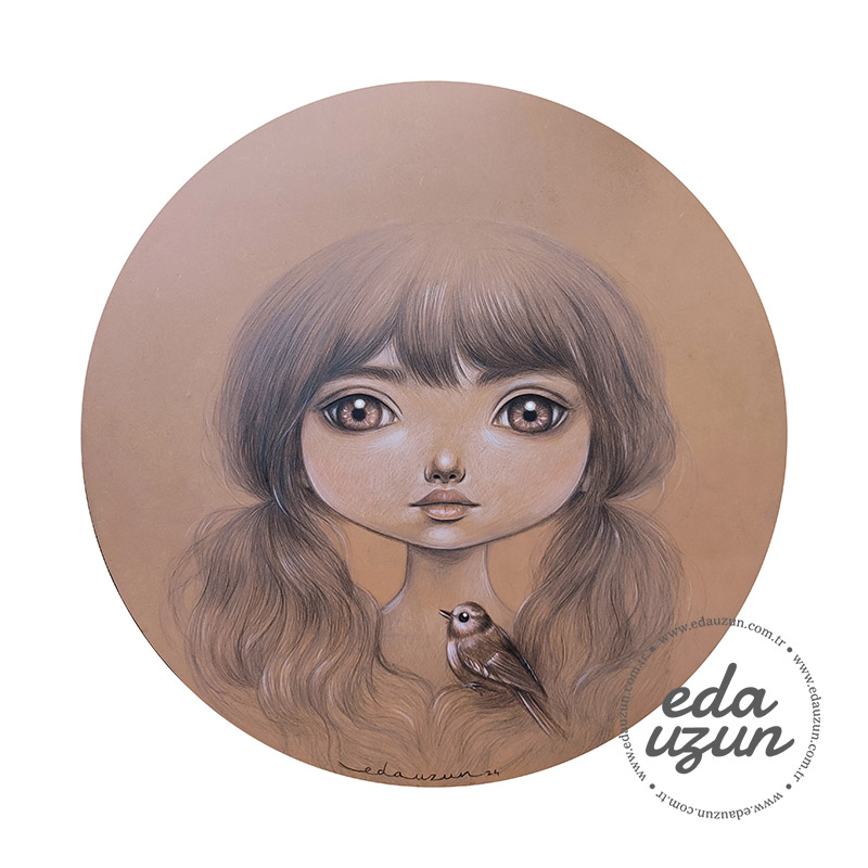 Little girl series 5, Dry Paint on Wood Panel, 25 cm diameter, 2024