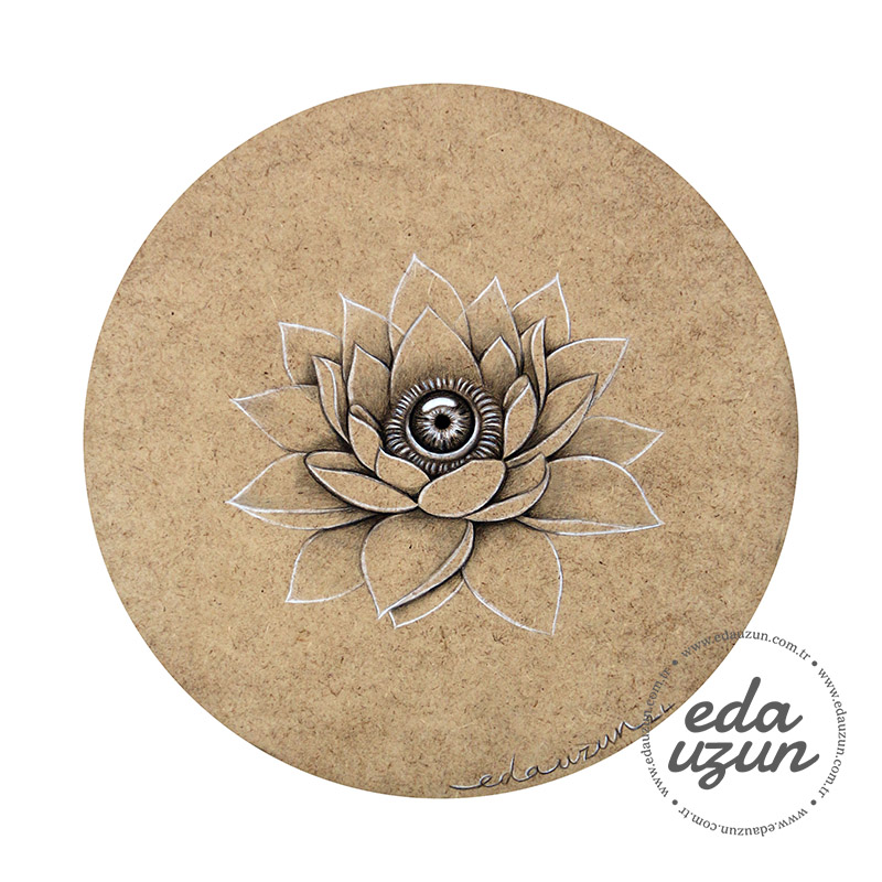 Lotus1, 25 cm diameter,, Dry paint on wooden plate, 2024