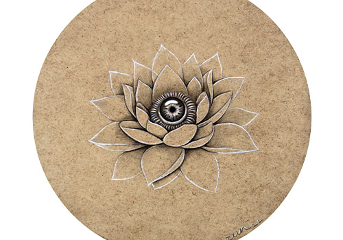 Lotus2, 25 cm diameter,, Dry paint on wooden plate, 2024